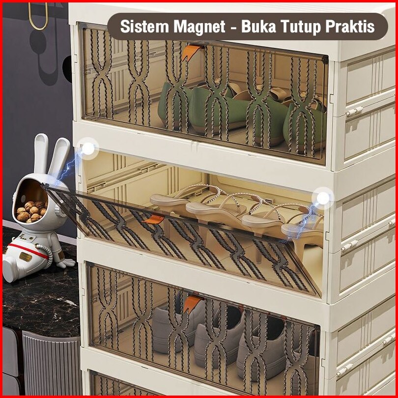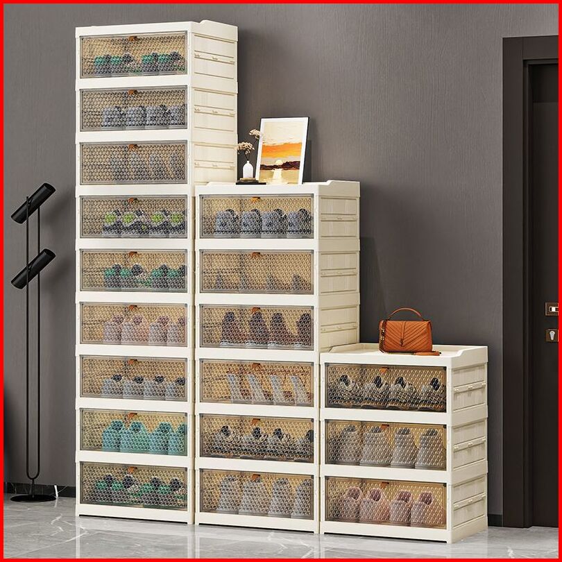 Rak Sepatu Susun Tertutup Rak Sepatu Tertutup Anti Debu 3 6 Tingkat Rak Sepatu Aesthetic Lebar 45cm
