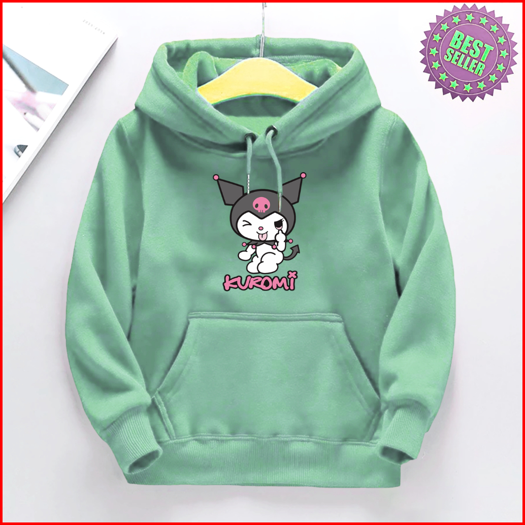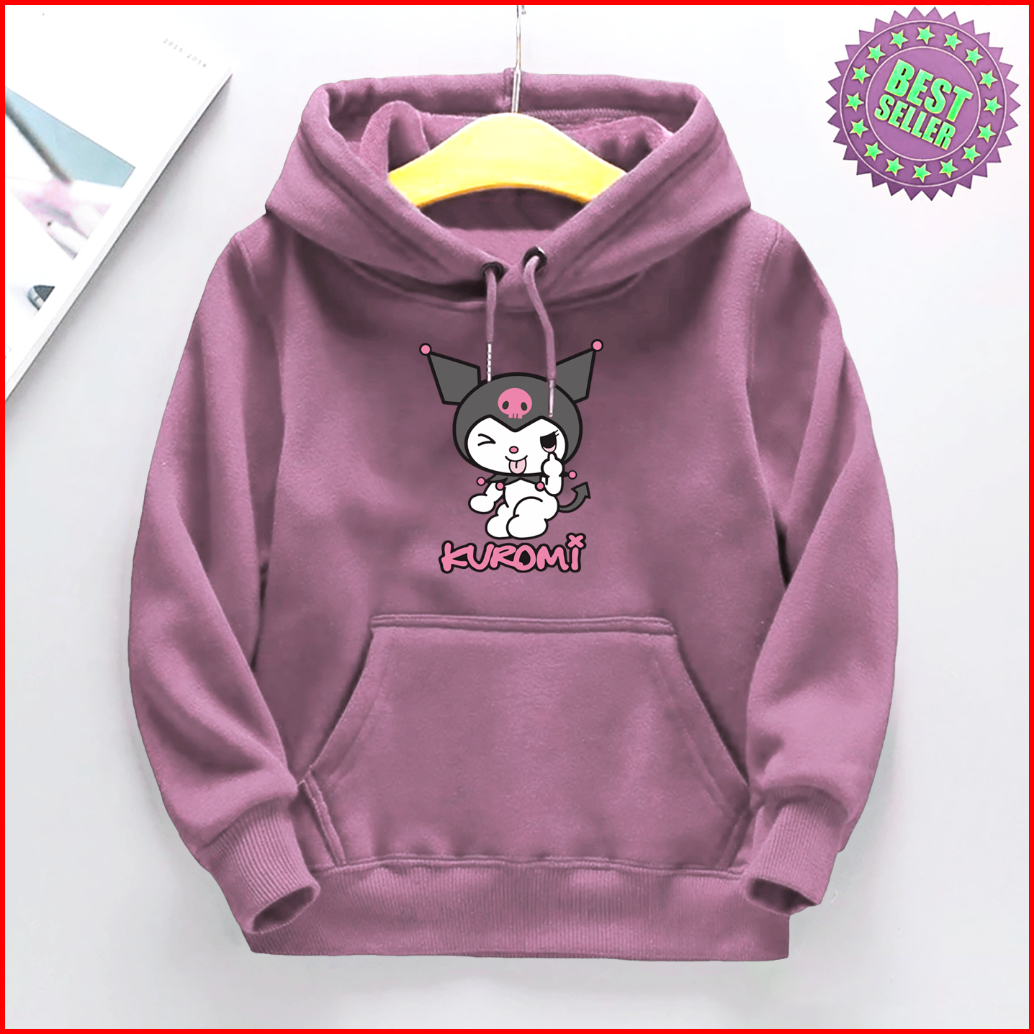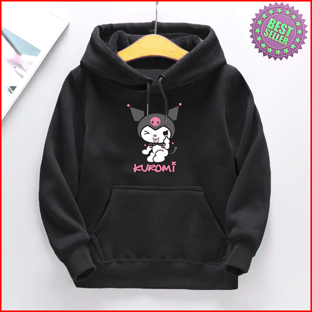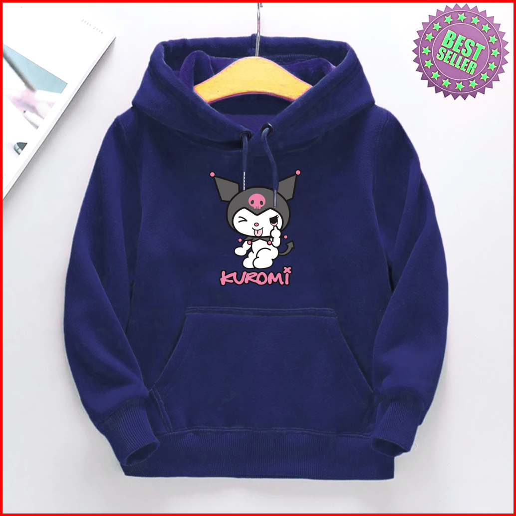 Sweater Hoodie Anak Perempuan Usia 5-15 Tahun Anime Kuromi Sweater Hodie Anak Bahan Flecee Hitam Navy Maroon Coksu Denim