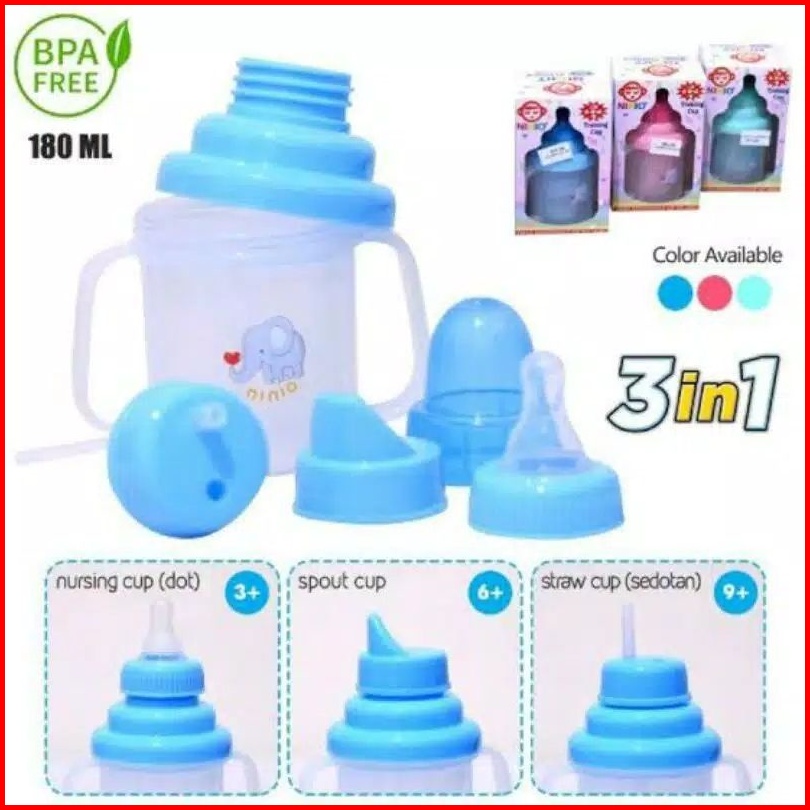 Ninio Training Cup 3 In 1 Botol Susu Bayi Gelas Training Gelas Minum Anak Straw Cup
