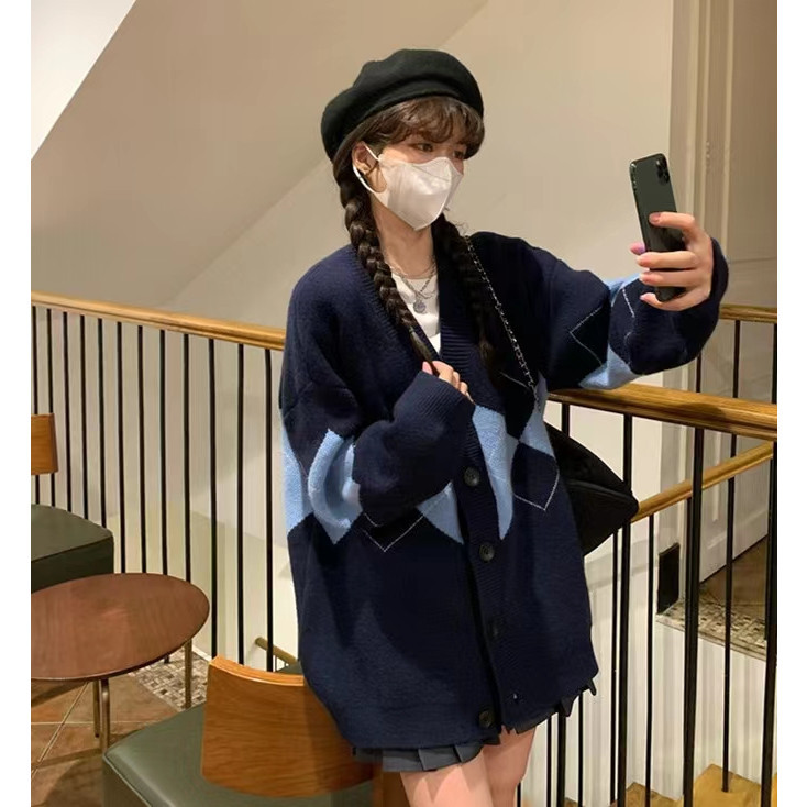 Lo Clothes Cardigan Rajut Import Cardigan Korean Style Outer Wanita Soft Knit Motif Plaid Rajut Oversize