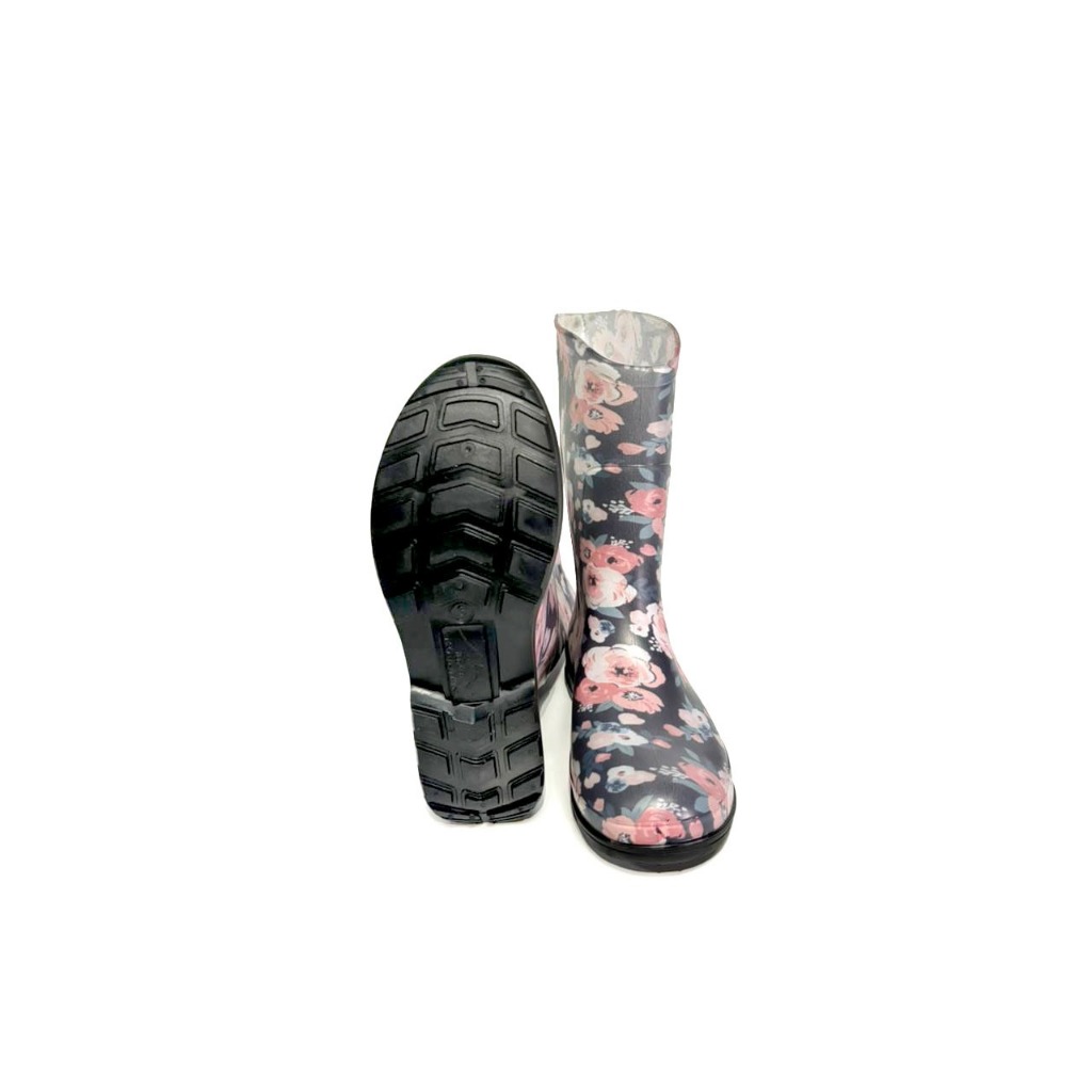 Sepatu Boot Pendek Thomas Floral Hitam Fashion Wanita Karet Ringan Anti Slip & Anti Air Lokal