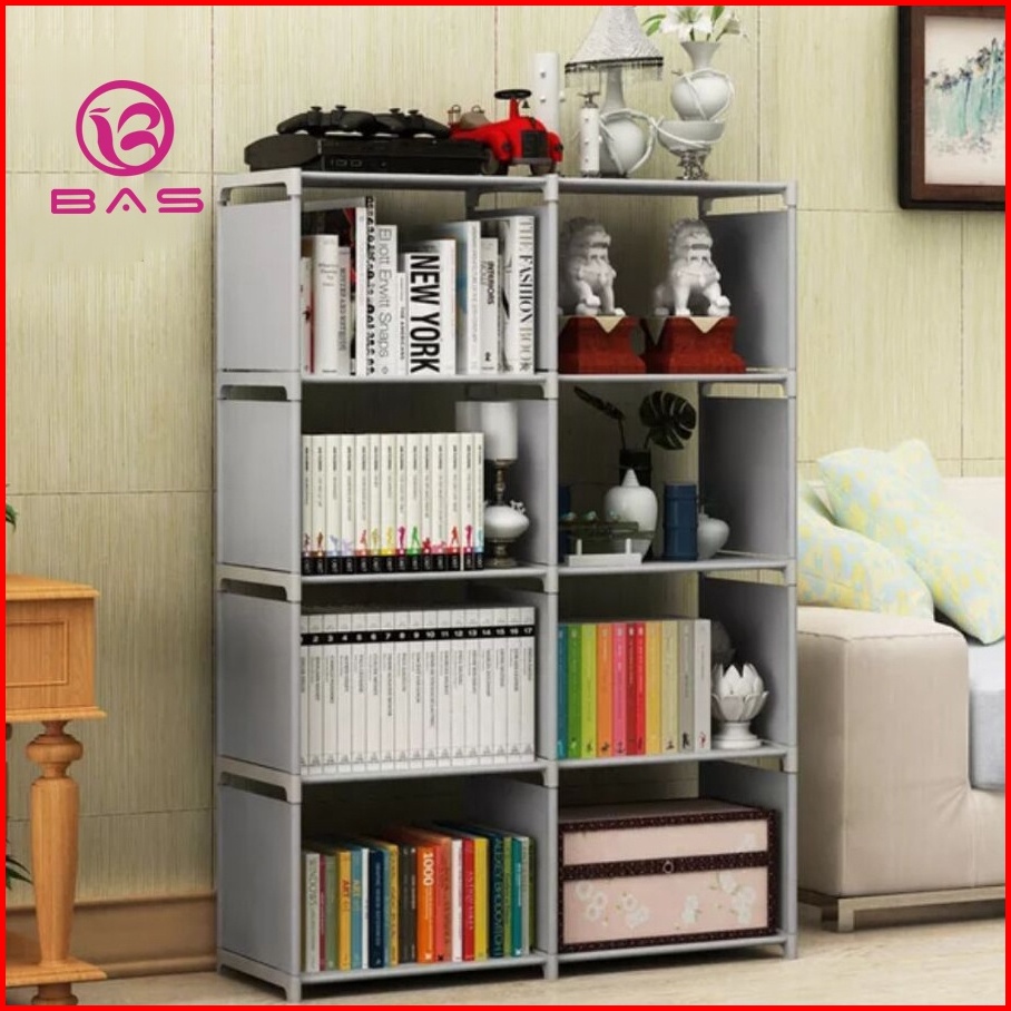 Bas Rak Buku Serbaguna Lemari Buku Susun Lemari Multi Fungsi Portable 2 Sisi