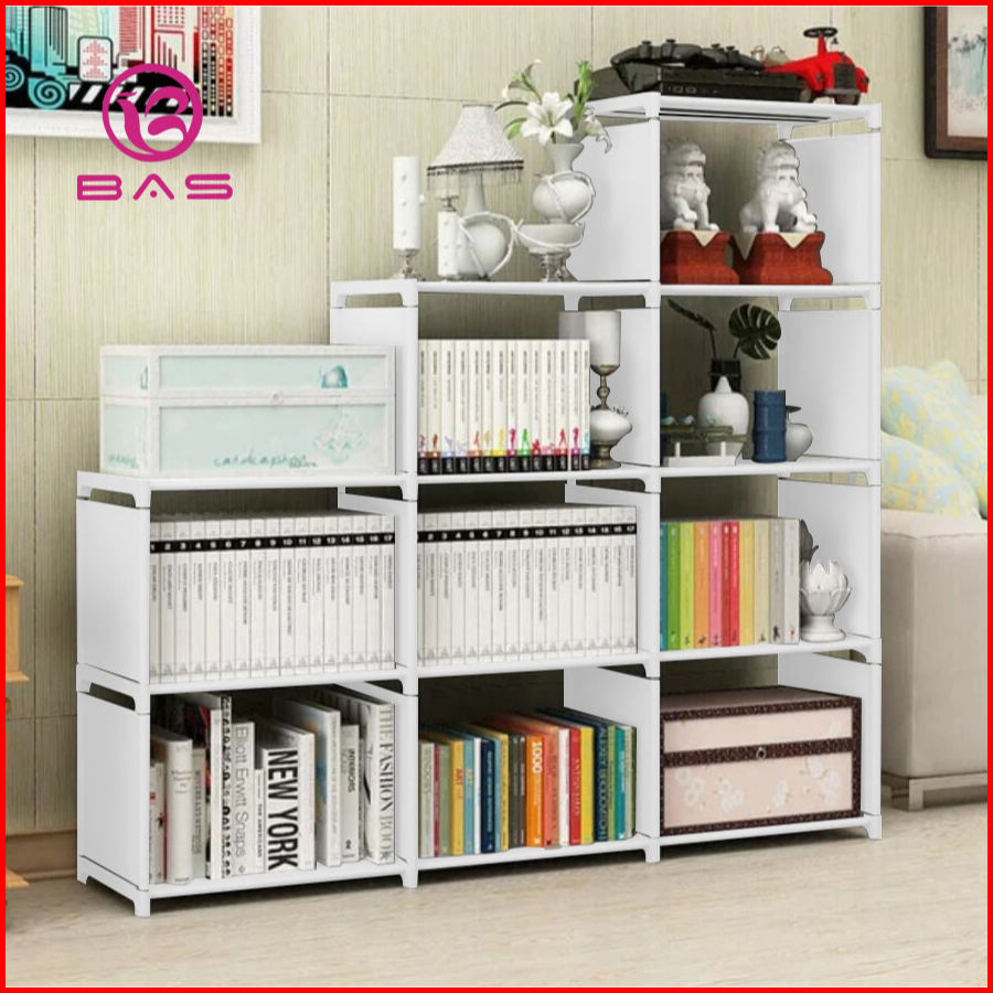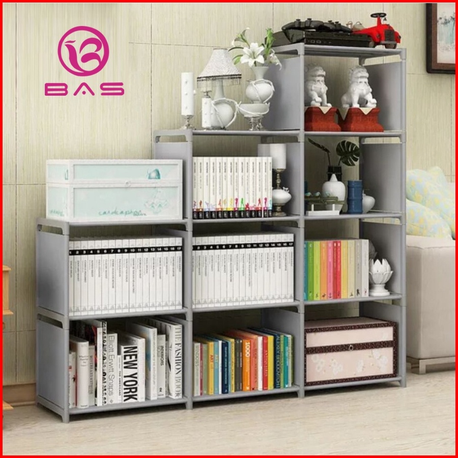 Bas Rak Buku Susun Lemari Buku Rak Serbaguna Portable 3 Sisi