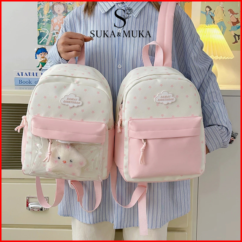 Tas Sekolah Pink Ransel Mini Lucu - Backpack Wanita Korean Style Untuk Pelajar Desain Premium Bernilai Tinggi Kapasitas