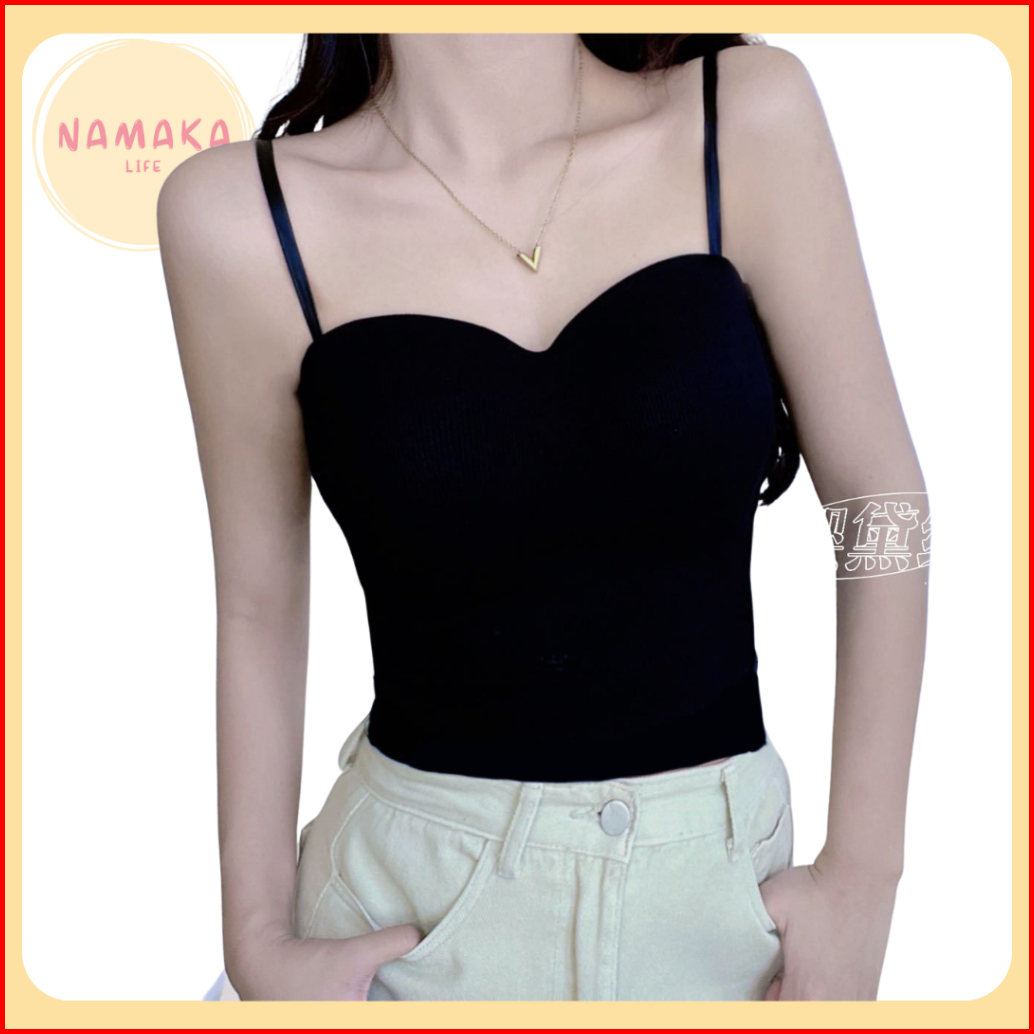 Nl Bralette Tanktop Crop Top Atasan Baju Pakaian Wanita Perempuan Premium Seamless Camisole Icesilk Dengan Cup Busa Pad