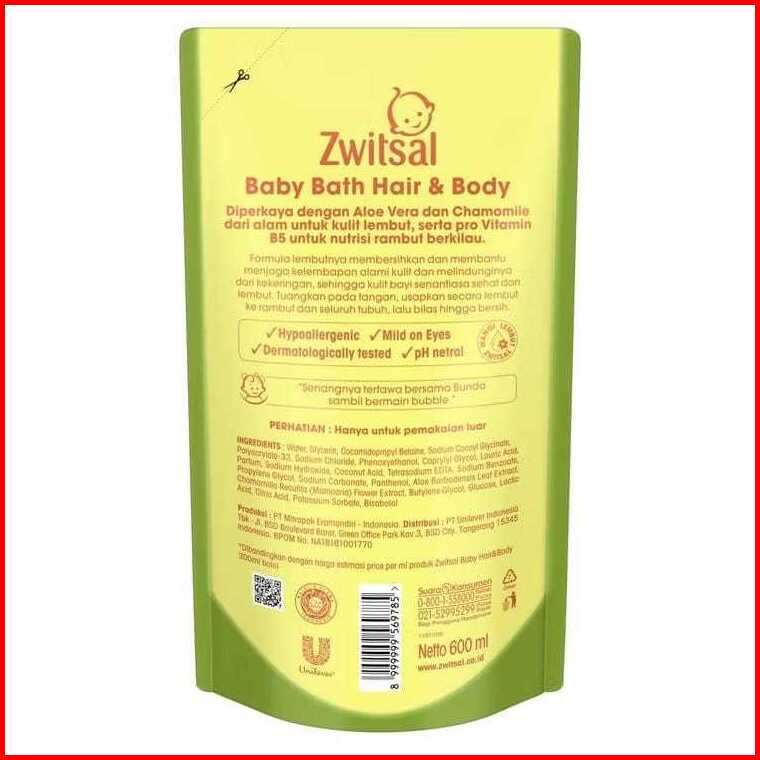Zwitsal Baby Hair Body Bath 600ml Aloevera Sabun Shampoo Bayi
