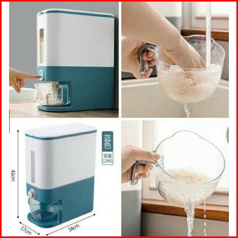 Dispenser Beras Modern 12kg Rice Box Tempat Penyimpanan Beras Otomatis Dengan Wadah Pengering Beras