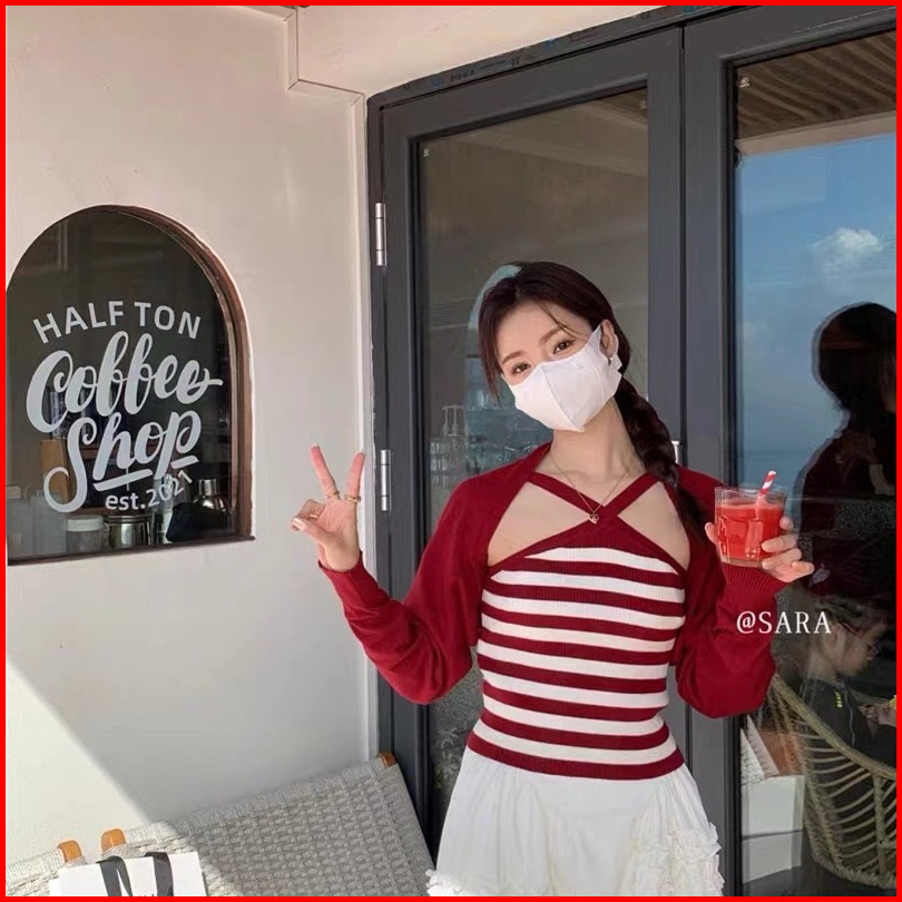 Tanktop Rajut Salur - Atasan Wanita Tanpa Lengan Style Korean T247 Atasan Knit Salur