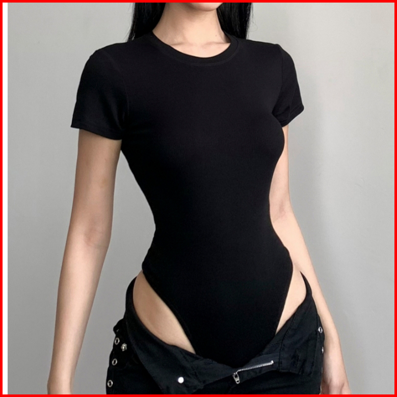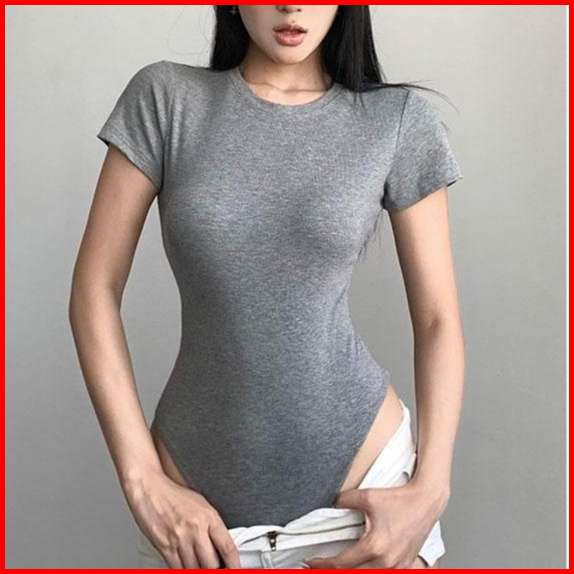99koutlet Women T- Shirt Bodysuit Round Neck Short Sleeve Slim Fit 3351 S M L Xl