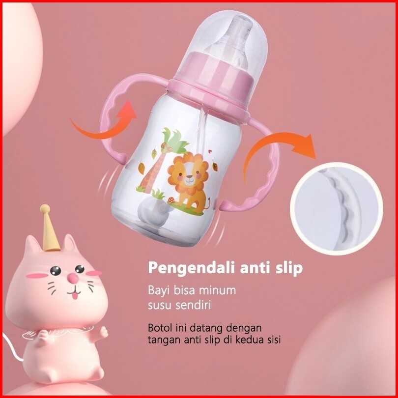 Paket Hemat 3pcs Botol Bayi 150ml Ringan Dan Kuat Dengan Pegangan Dot Leher Tipis Gratis Dot Bayi Xm-002