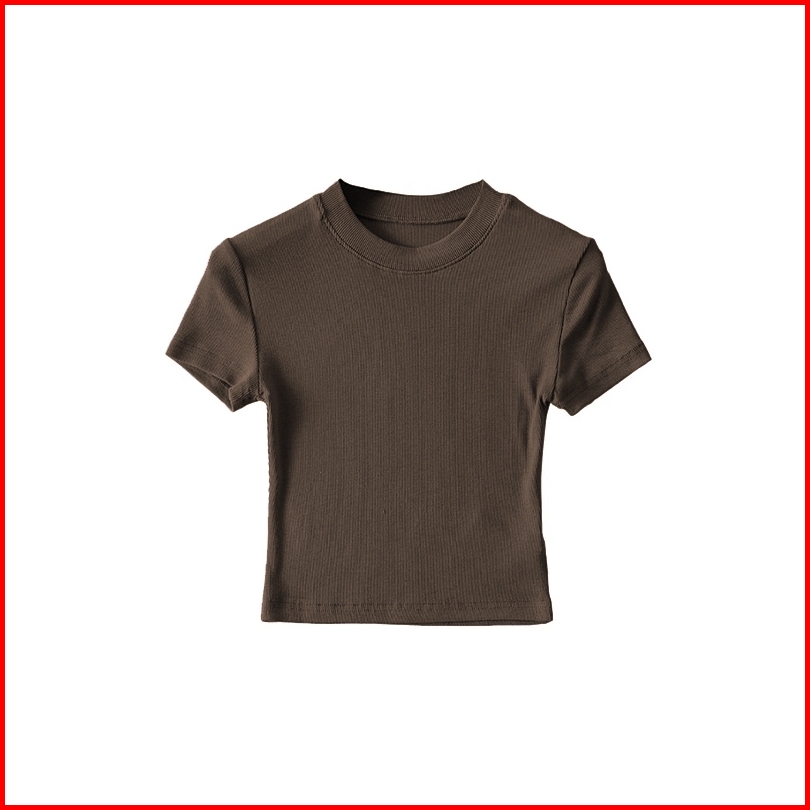 Kaus Lengan Pendek Warna Polos Bahu Kanan Gaya Korea Atasan Pendek Multiwarna Serbaguna Slim Fit Baru Wanita