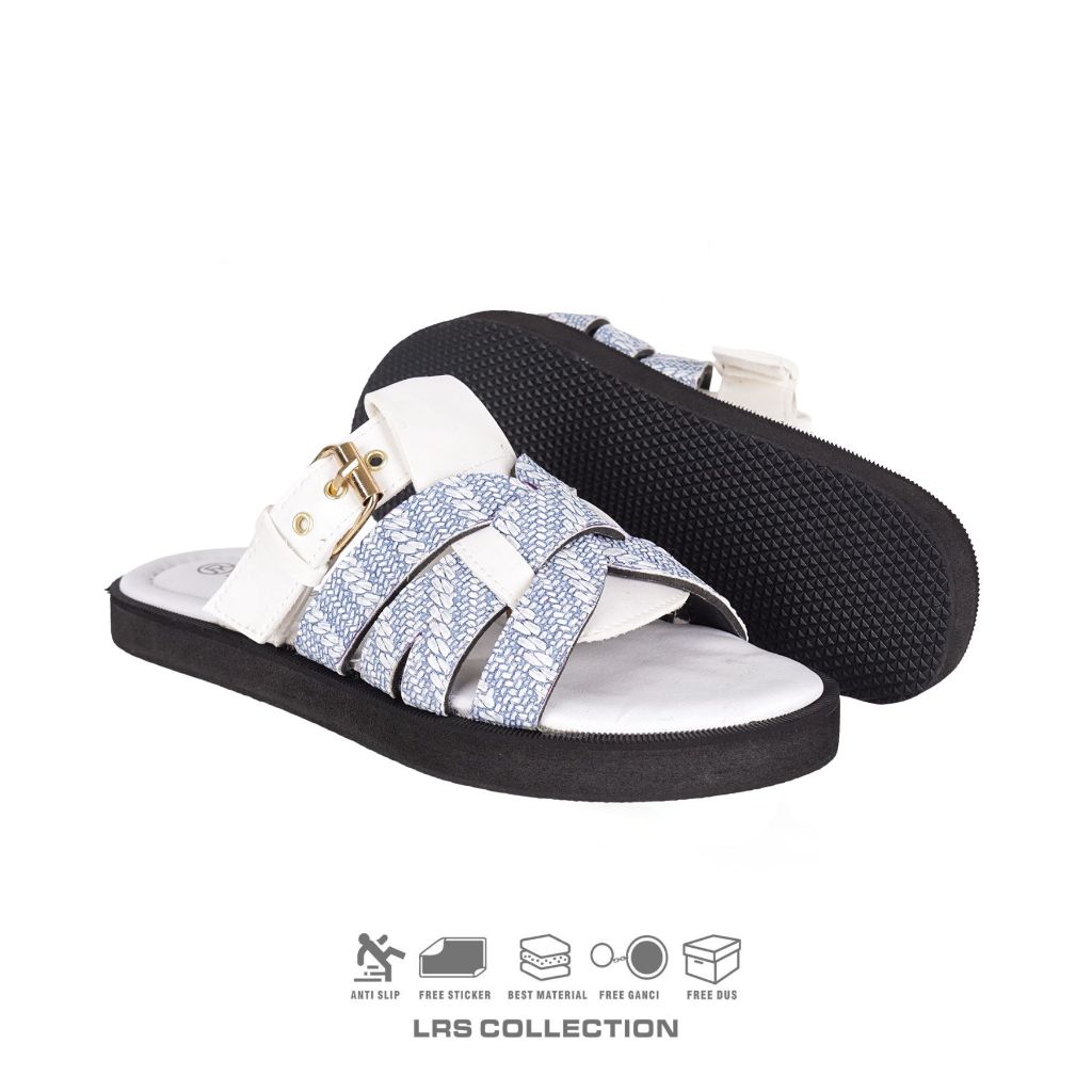Lrs Collection - Sendal Wanita Kanvas Nyaman Mewah Sandal Flat Wanita Amara - White Sky Edition