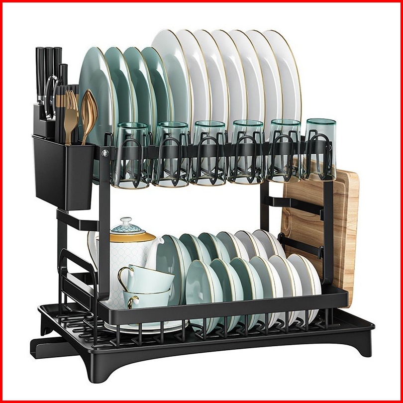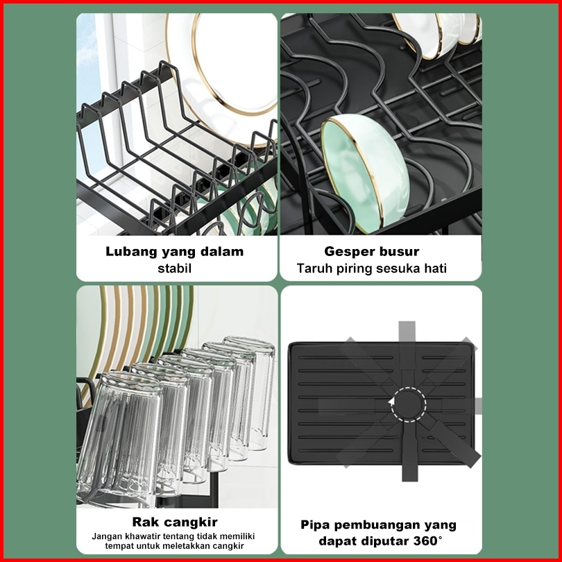 Rak Piring Dapur Stainless Steel 2 Tingkat Rak Pengering Piring Rak Mangkuk Piring