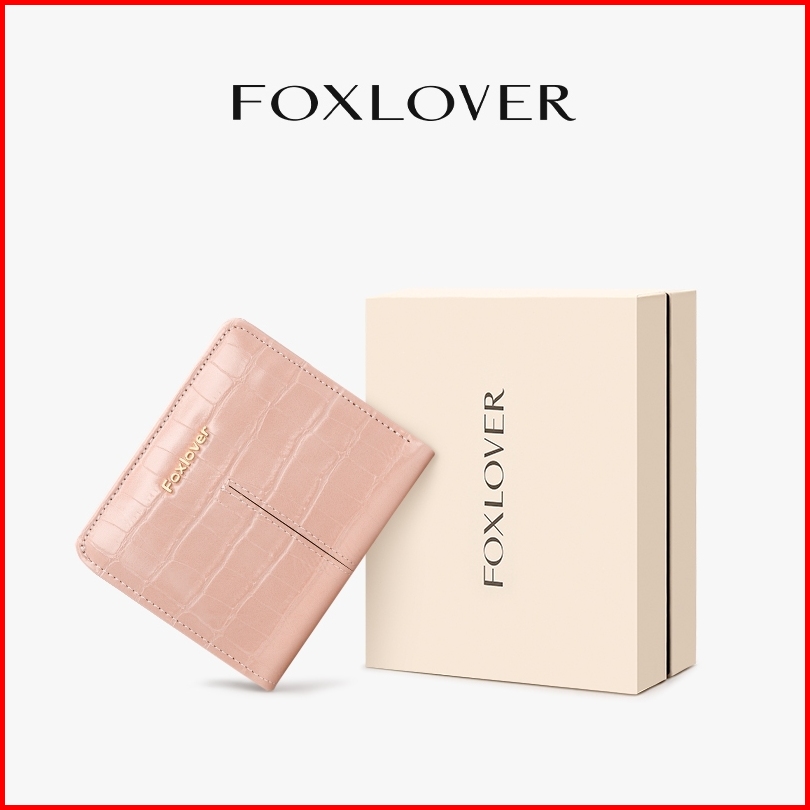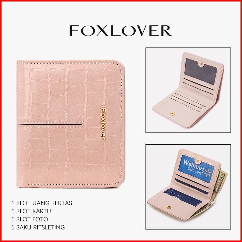 Foxlover Dompet Pendek Wanita Desain Retak Enam Slot Kartu Pemegang Kartu Merah Muda Putih