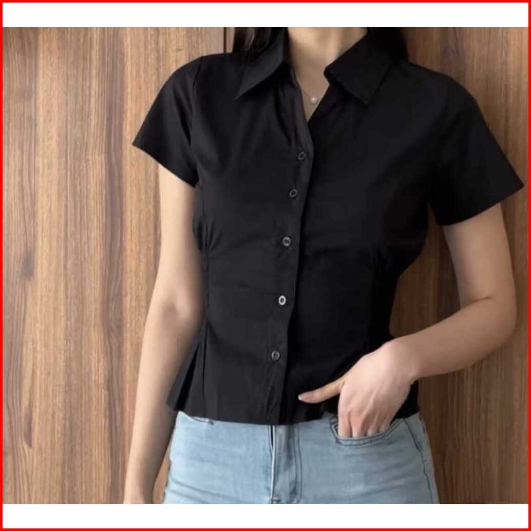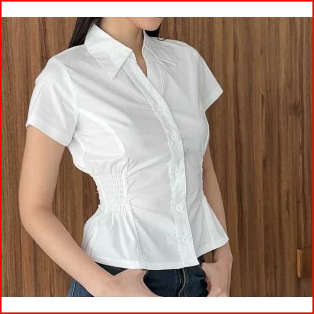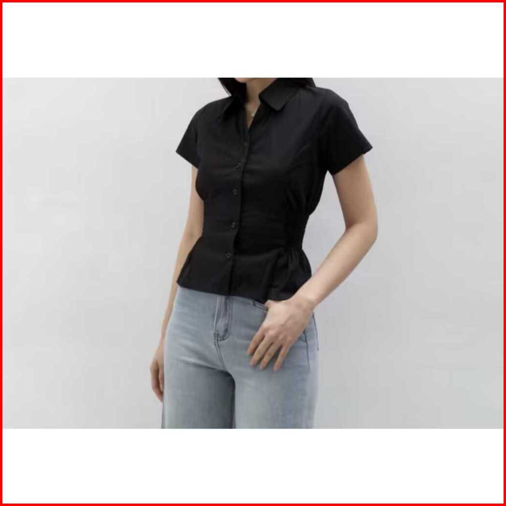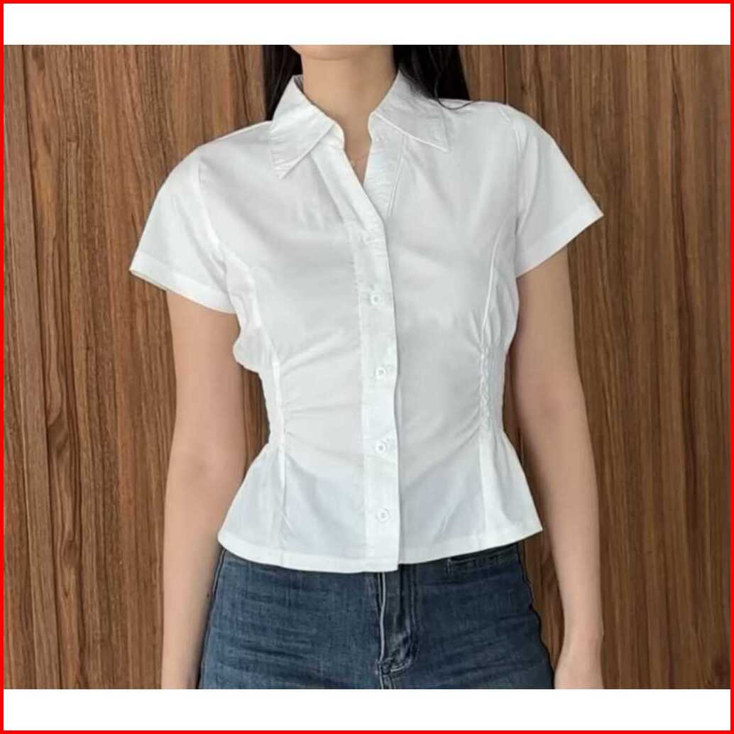 Aleesya Shirt Atasan Wanita Lengan Pendek Korean Style Kemeja Korean Slimfitted