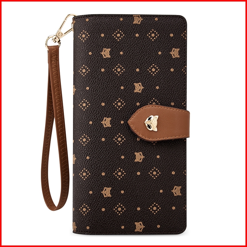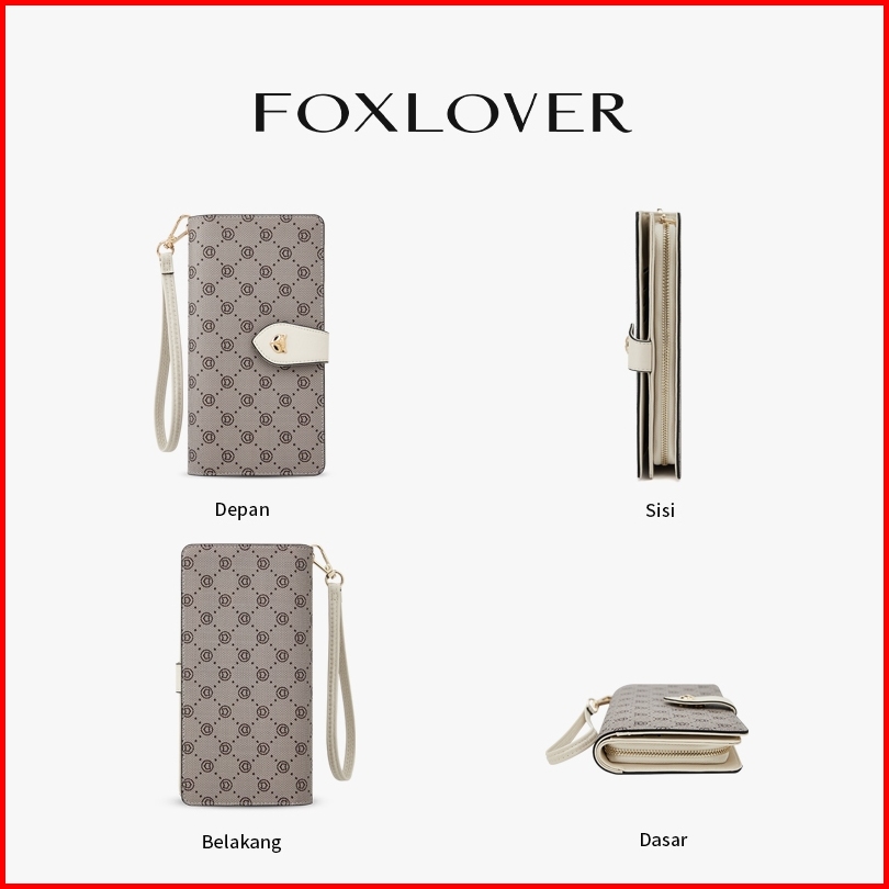 Foxlover Dompet Panjang Wanita 11 Slot Kartu Klasik Desain Retro Abu-abu Cokelat