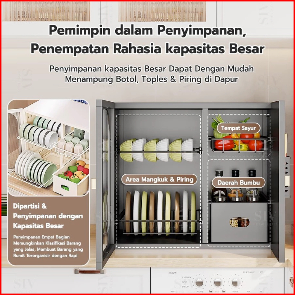 Uliance Rak Piring Tertutup Rak Cuci Piring Stainless Pengering Piring Stenlis Dapur Dish Rack Dish Drainer