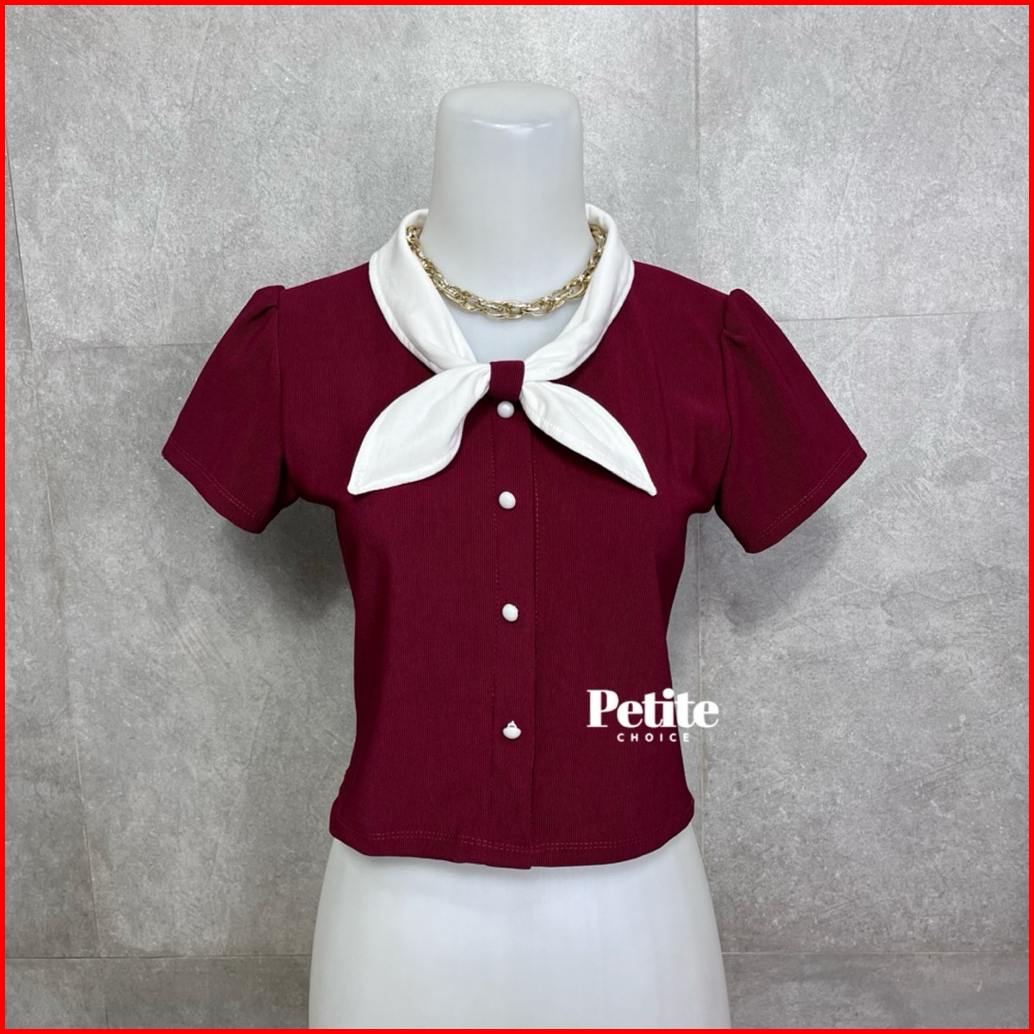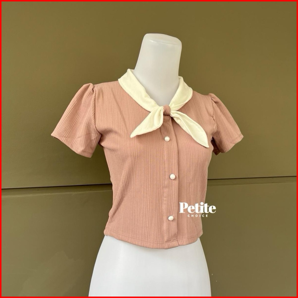 Petitechoice Marlene Top Atasan Wanita Knit Stretch Serut Casual Slim Fitting Coquette Pita Kancing Mati Tali Crop Korea