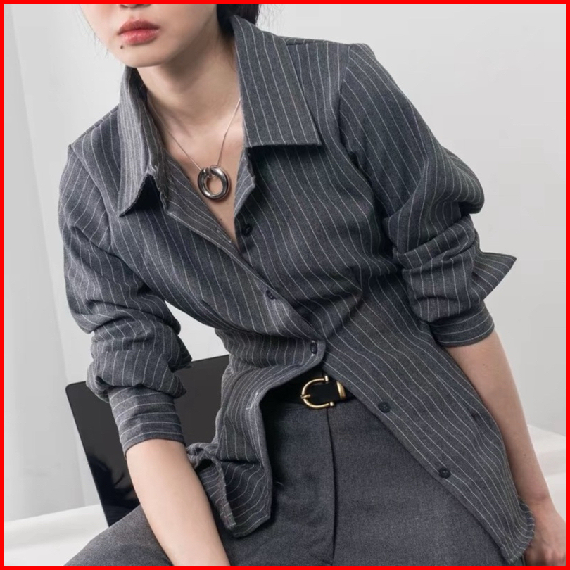 Havah - Kemeja Wanita Luna Fitted Stripe - Atasan Fit Body Garis Salur Slimfit Casual Modis
