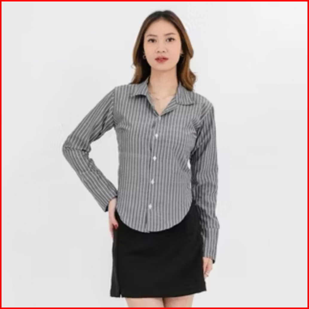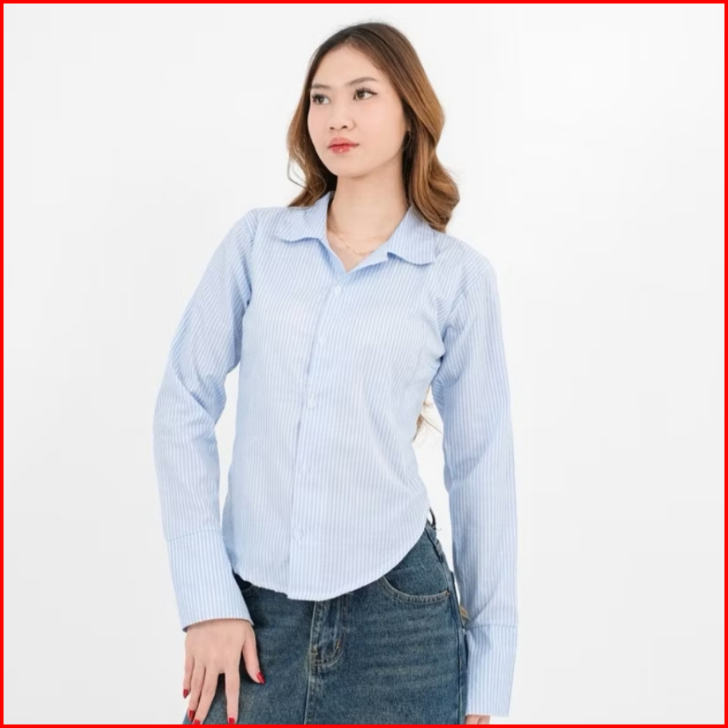 Ezzy Fitted Shirt Atasan Kemeja Wanita Kemeja Salur Stripe Slim