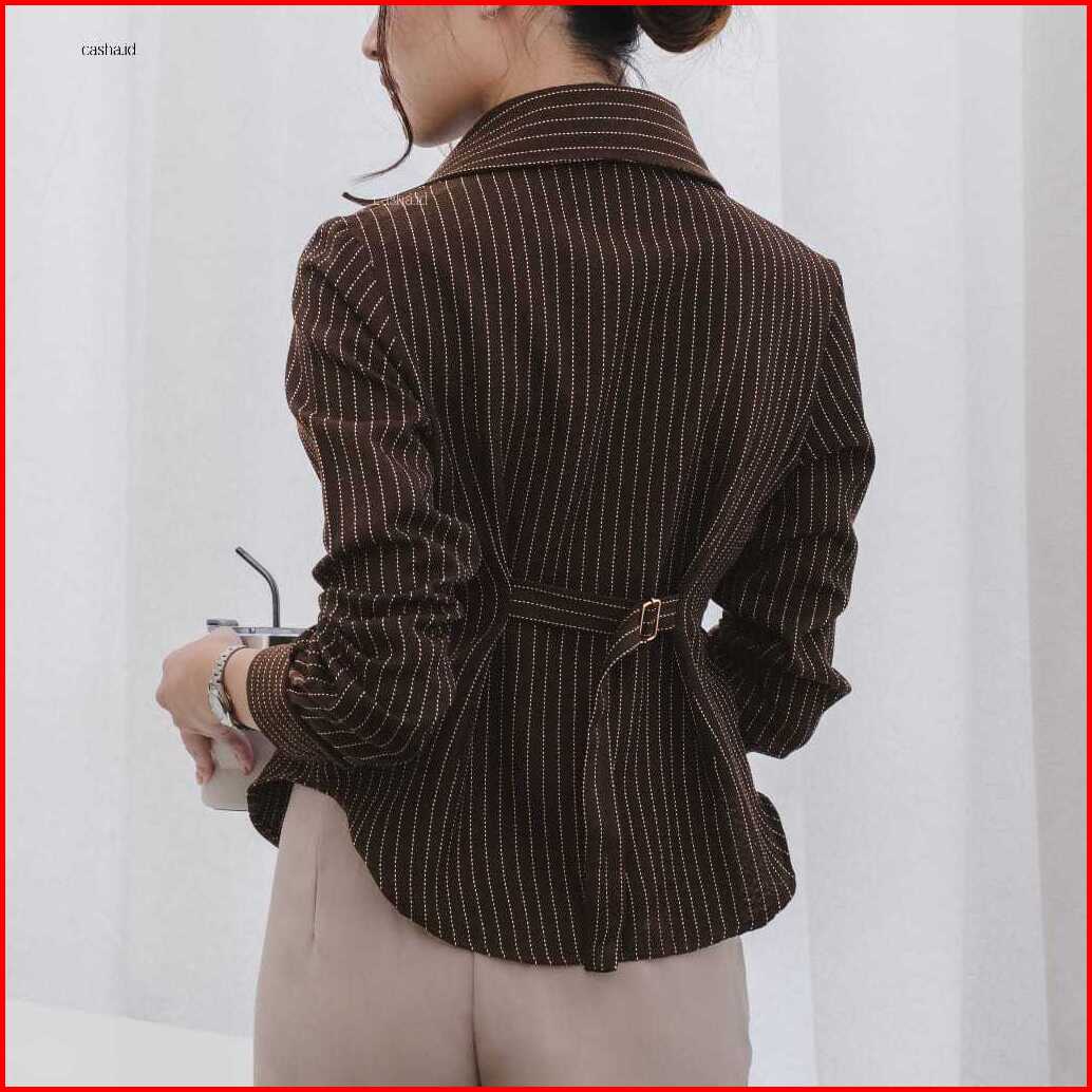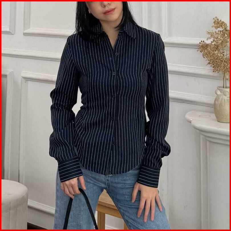 Blirab - Kemeja Luna Stripe - Atasan Slimfit Lengan Panjang Garis Strip Basic Salur Wanita