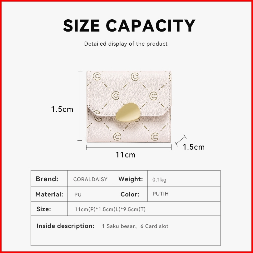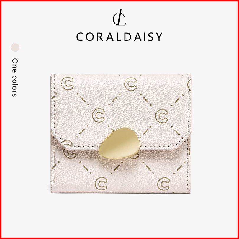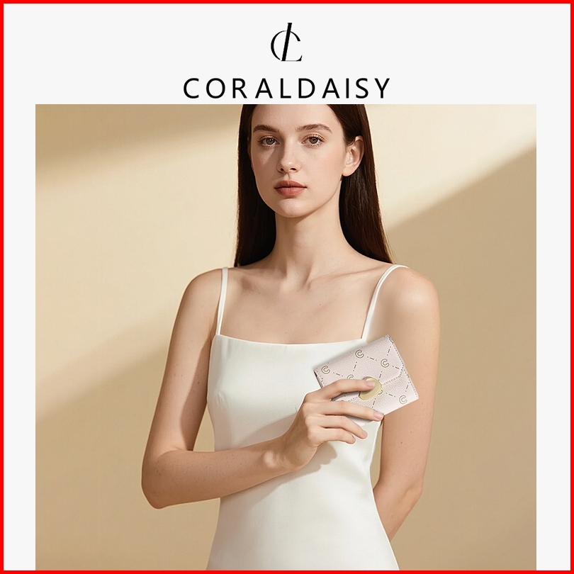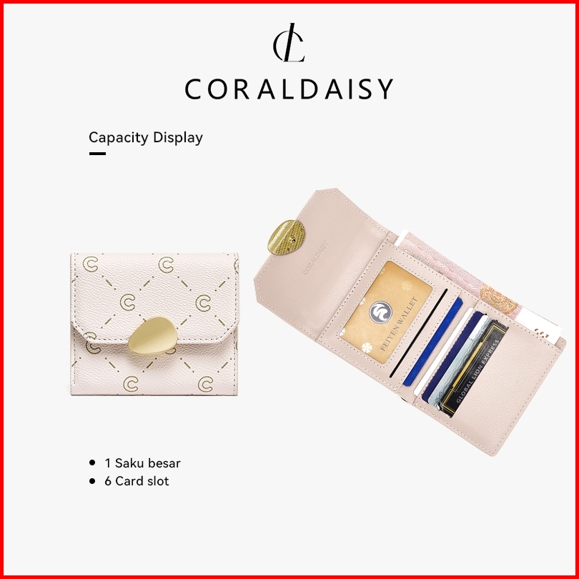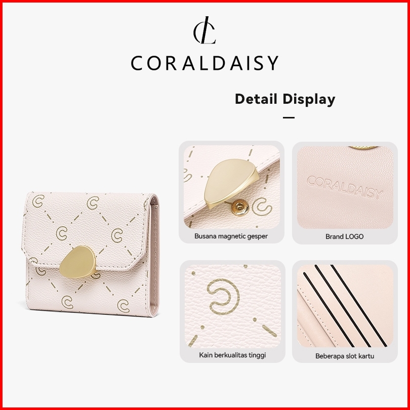 Coraldaisy Tas Wanita 2025 Elegan Ganda Lipat Dompet Beberapa Kompartemen Card Holder Kulit Dompet