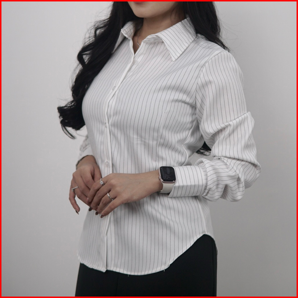 Selena Fitted Shirt - Kemeja Kerja Wanita Fit Garis Stripe Karet Premium