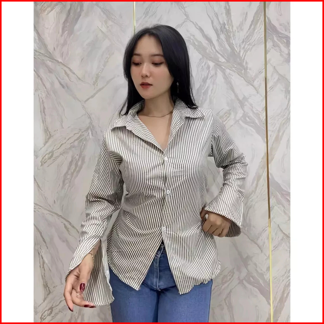 Julia Top Kemeja Slim Fit Atasan Wanita Fabric Cotton Slim Effect Office Fits Casual Baju
