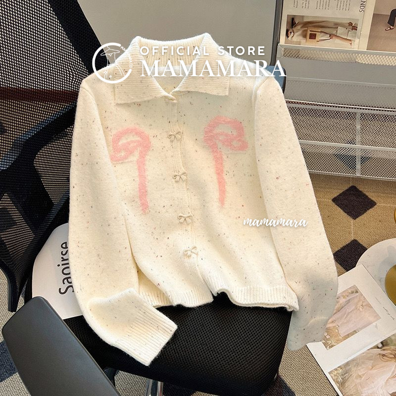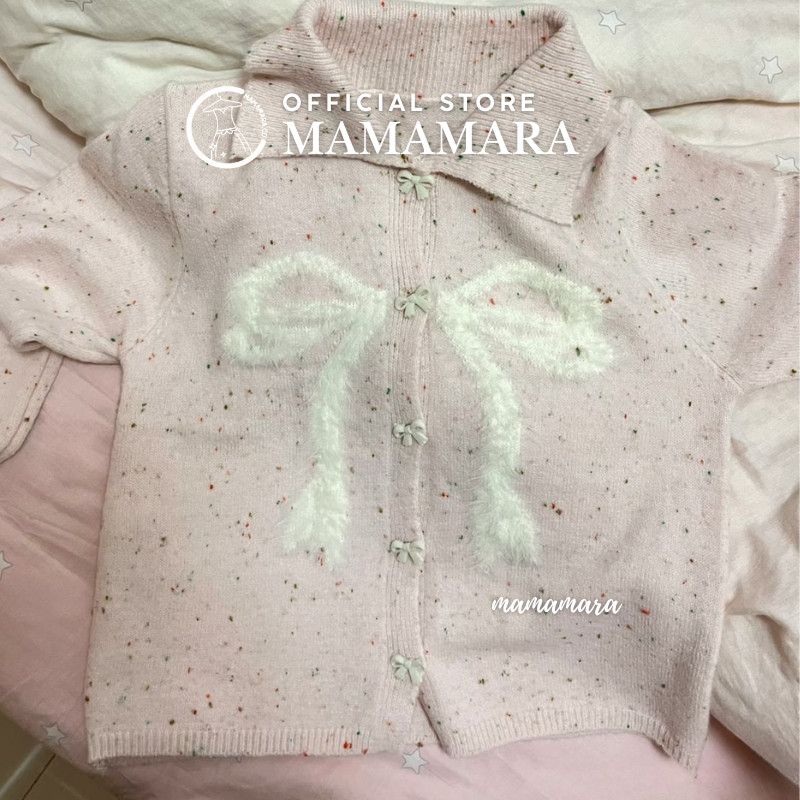 Mamamara - Cardigan Rajut Pita Coquette Bulu Halus Knit Girly
