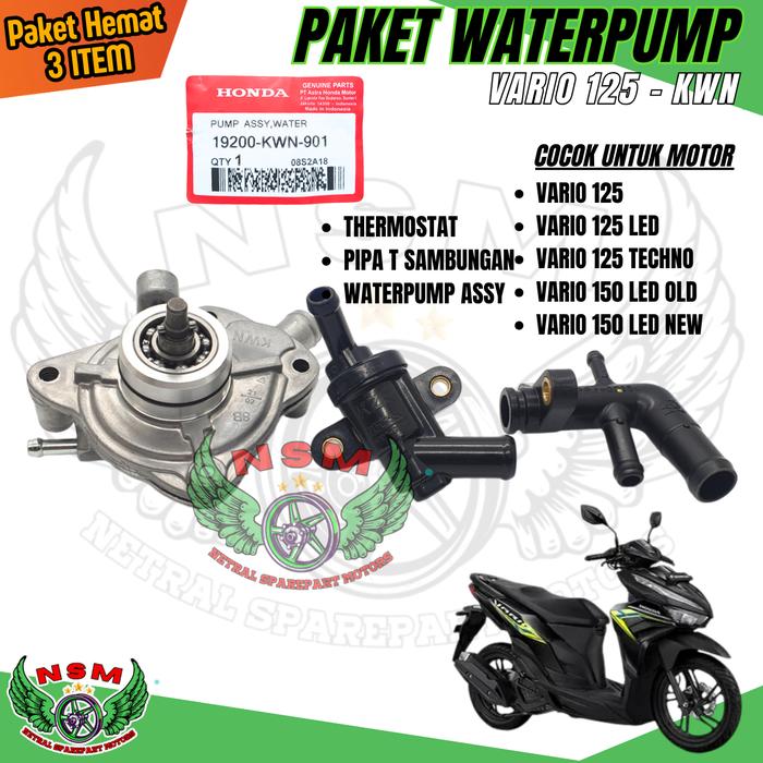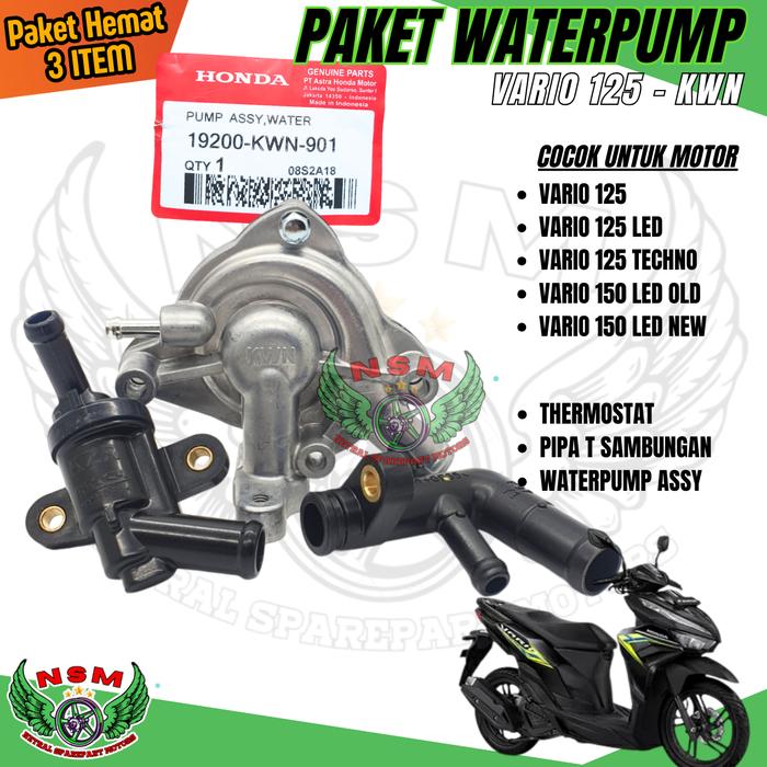 PAKET 3ITEM WATERPUMP A55Y VARIO 125 + TERMOSTAT A55Y + PIPA SAMBUNGAN T VARIO 125 VARIO F1 TECHNO - PAKET 3ITEM