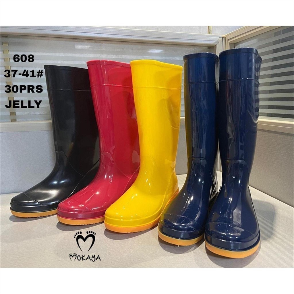 Sepatu Boots / Boot Tinggi Proyek Hujan Karet Glossy Polos Wanita Anti Slip Super Simple Elegant Trendy Import Mokaya /