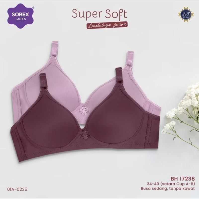 BRA/BH WANITA SOREX ART 17238. CUP.B SUPER SOFT BEST.TANPA KAWAT BUSA TIPIS. UK:34,36,38,40