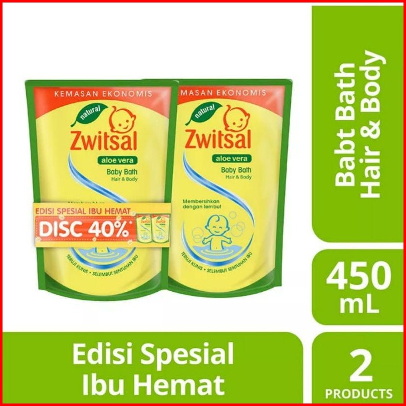 Zwitsal Natural Baby Bath 2-in-1 Hair Body Poch 450ml Twin Pack