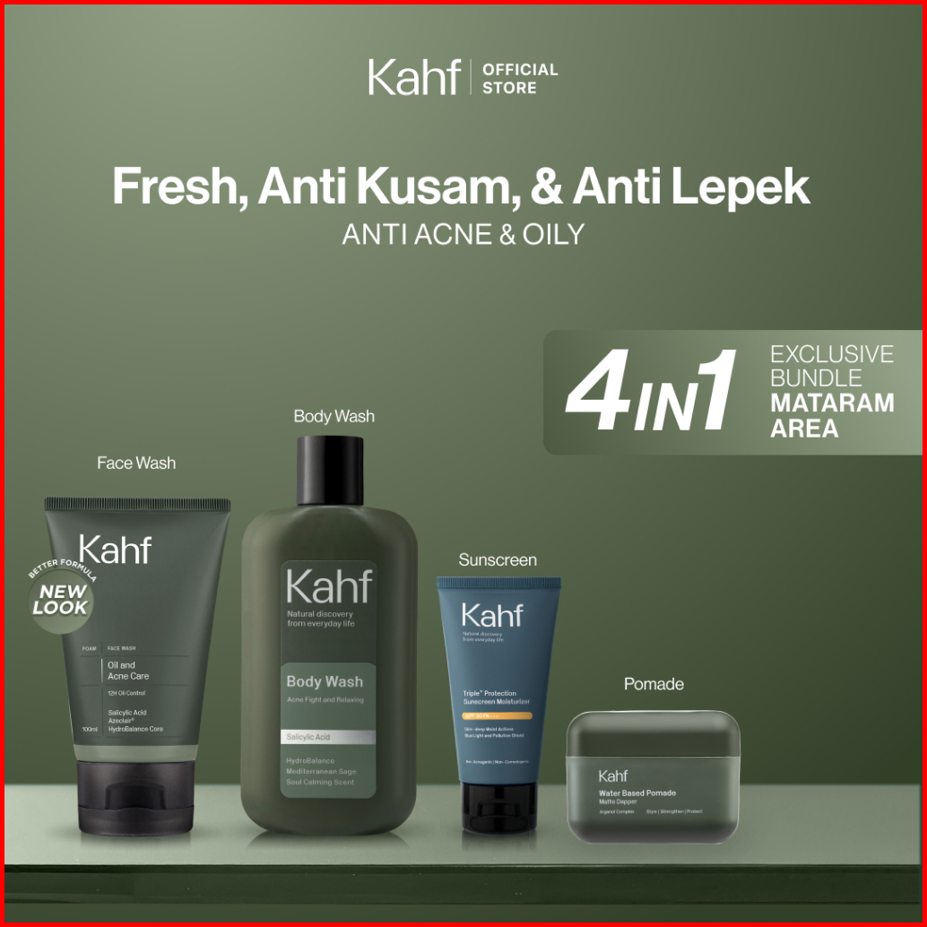 Exclusive Bundle For Mataram Area Kahf 4in1 Paket Paket Fresh Anti Kusam Anti Lepek Face Wash Sunscreen Pomade Body Wash