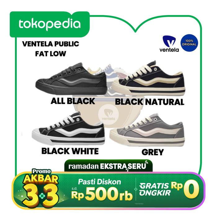 Sepatu Ventela PUBLIC FAT Black Natural / Black White / All Black / Grey Shoes dengan Free Sticker &