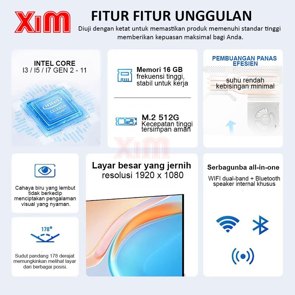 Xim PC Komputer Full PC All-in-One Baru Intel Core i5-3320 i7-10850H I7Terbaru HD Super Tipis Untuk Rumah, Belajar, Kant