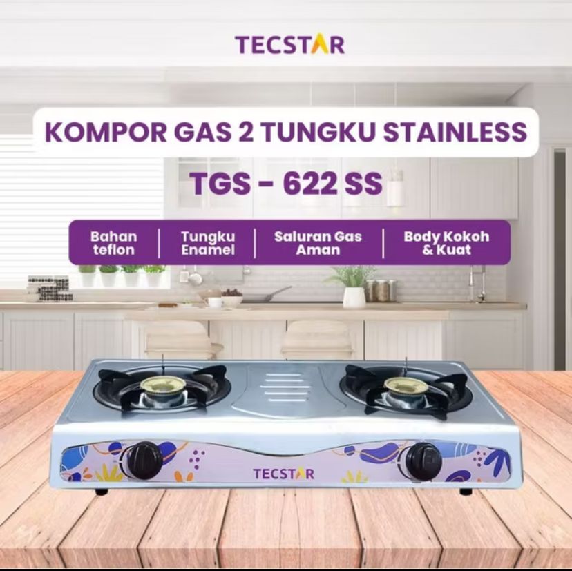 Kompor Gas TECSTAR 2 Tungku TGS-622SS Stainless