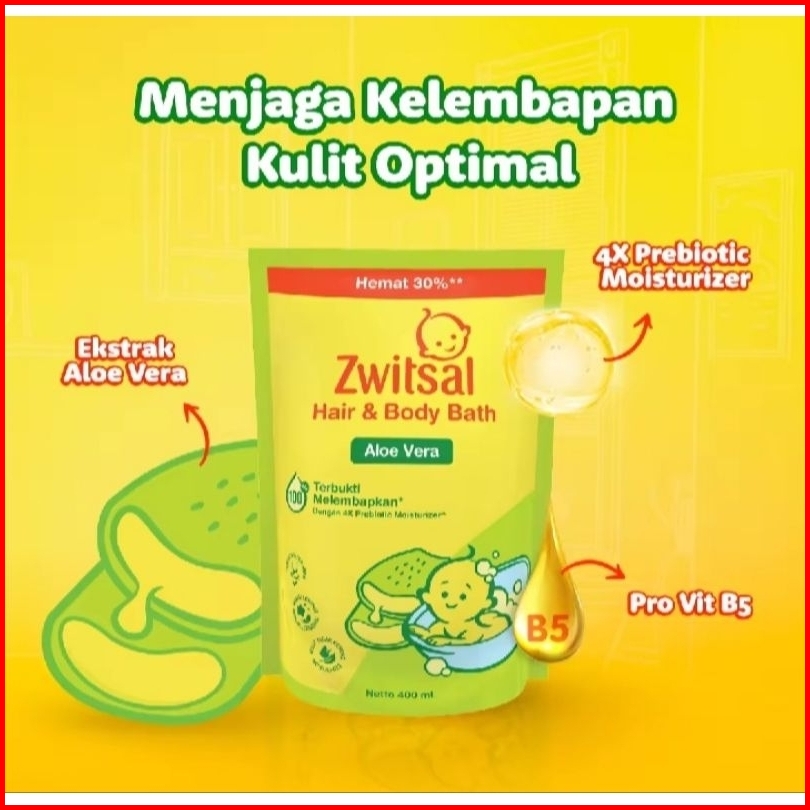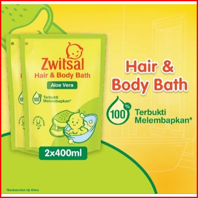 Twinpack 2x400ml Zwitsal Baby Bath Hair Body Aloevera 400ml