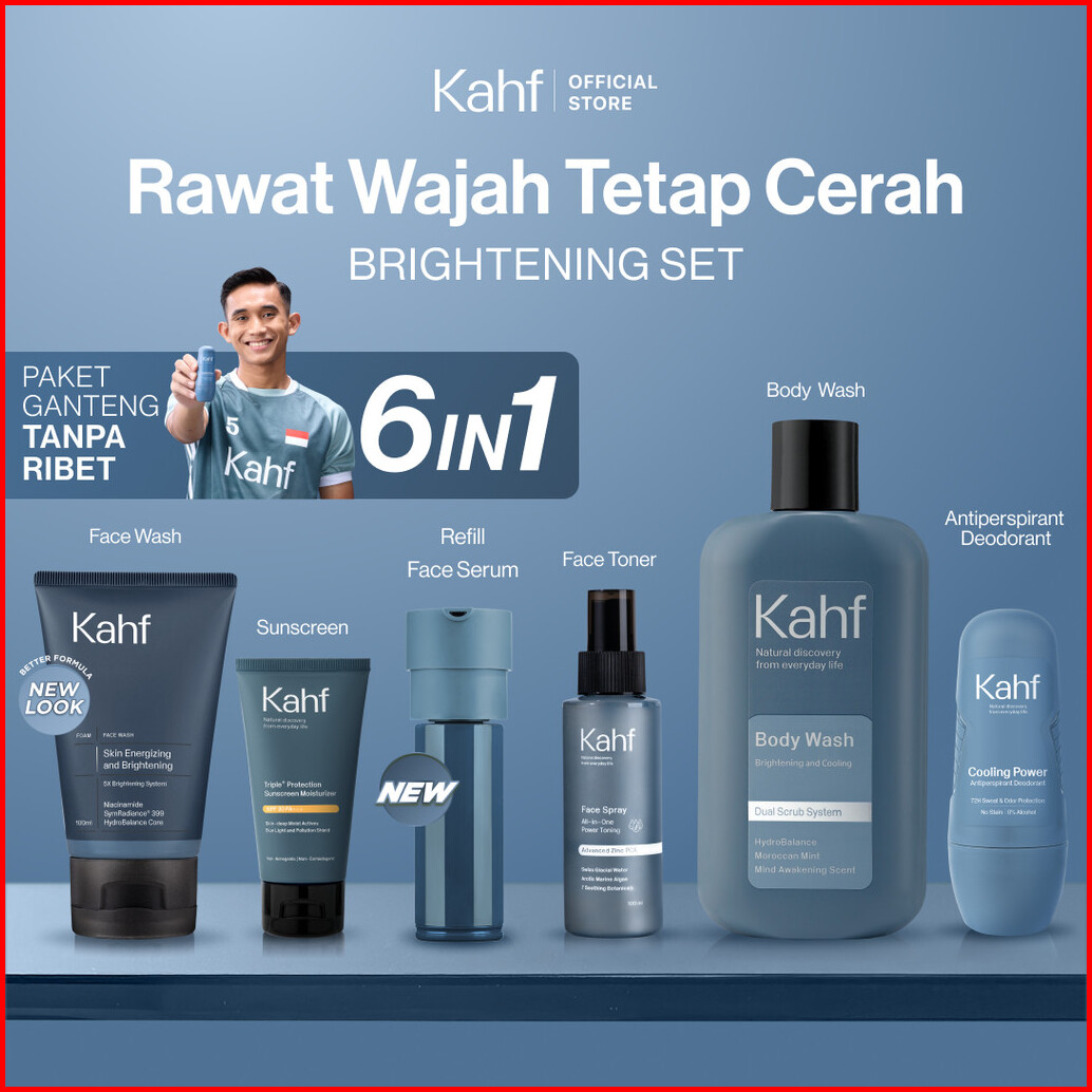 Kahf Bundle 6in1 Paket Ganteng Tanpa Ribet Paket Complete Set Face Wash Toner Serum Sunscreen Moisturizer Body Wash Deod
