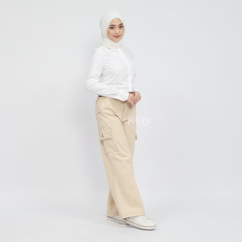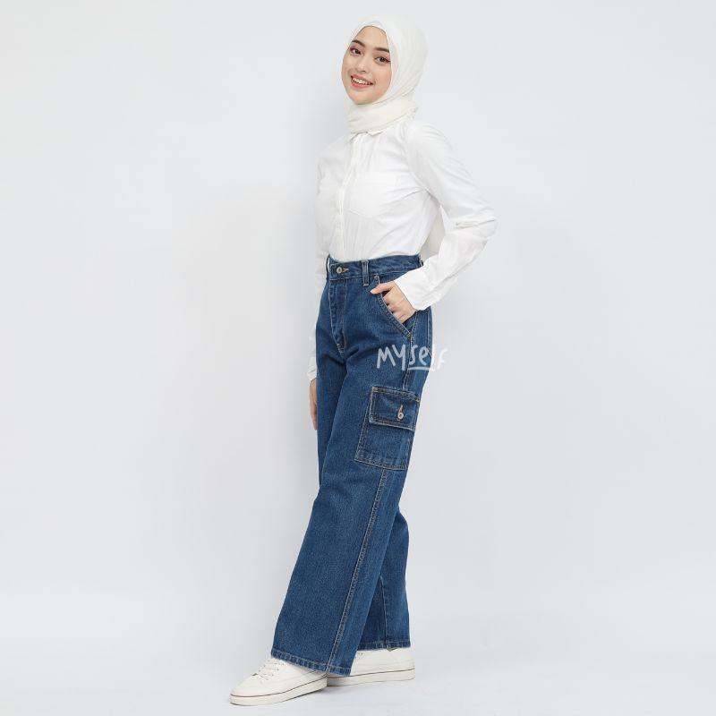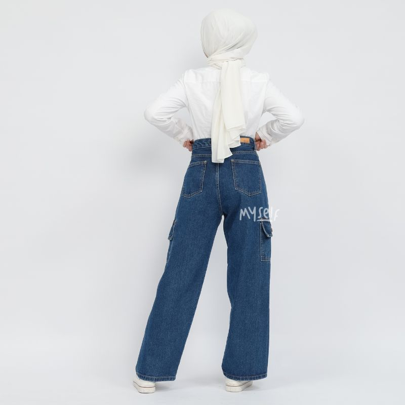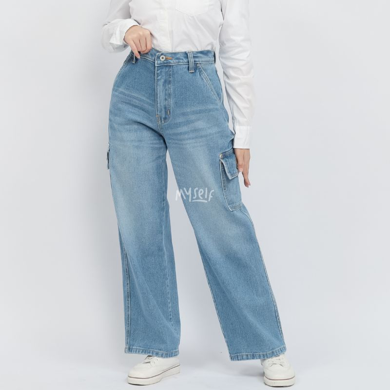 Myself Celana Highwaist Loose Cargo Jeans Wanita irish