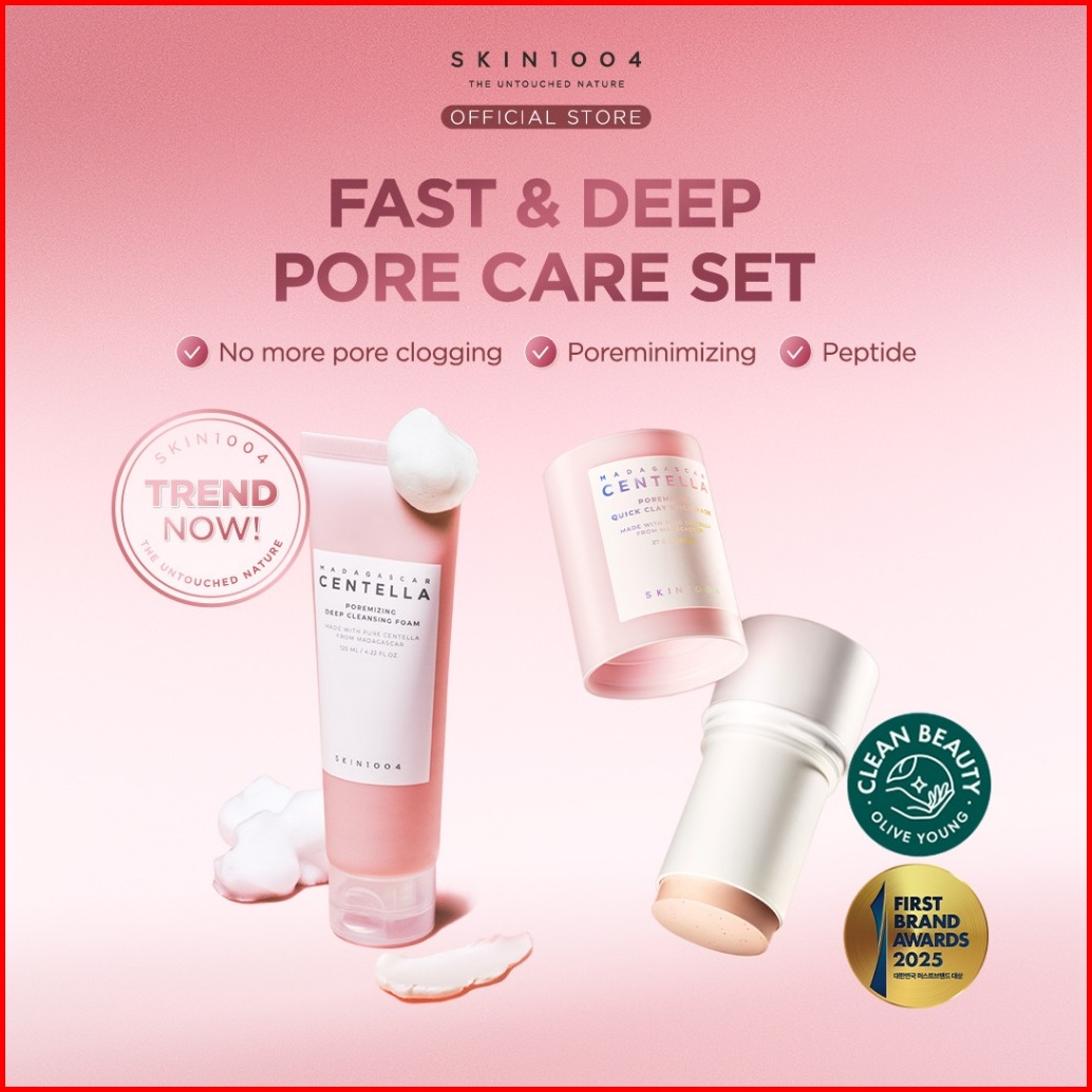 Skin1004 Fast Deep Pore Care Set Poremizing Deep Cleansing Foam 125ml Quick Clay Stick Mask 27g