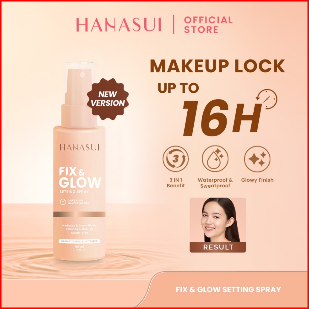 Hanasui Fix Glow Setting Spray - Setting Spray Glowy Finish Make Up Menghidrasi Kulit Maskproof Tahan Lama