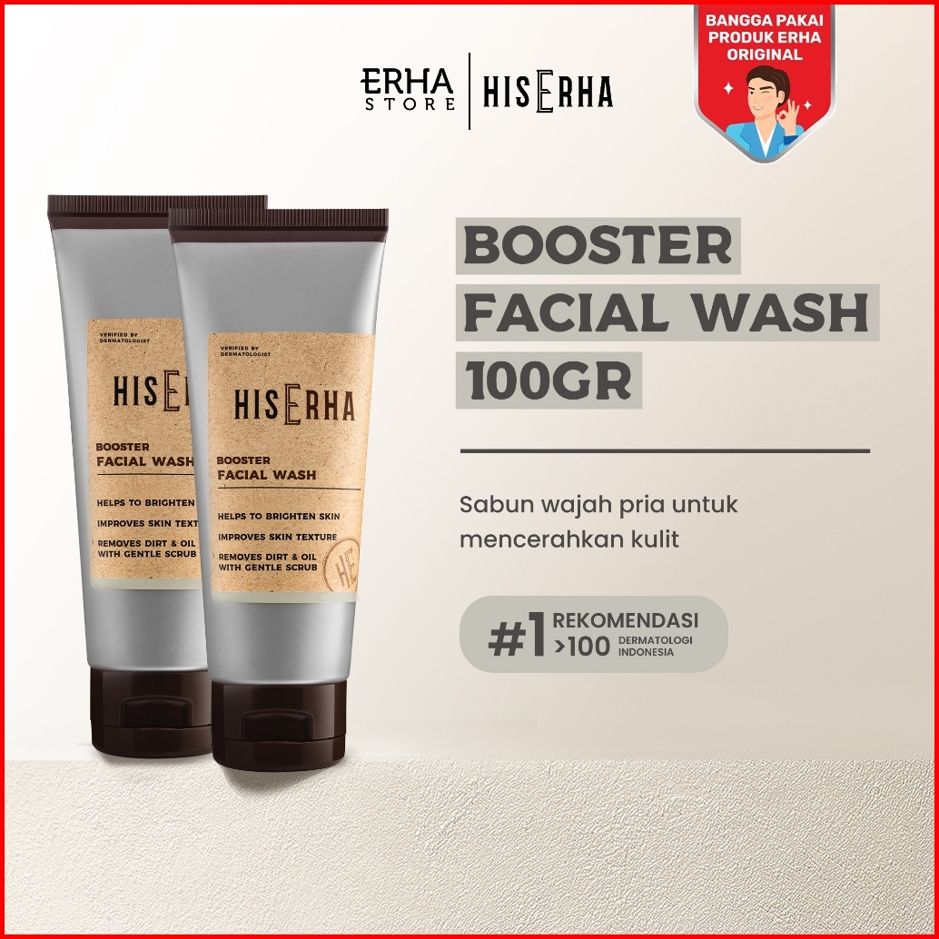 His Erha Brightening Booster Facial Wash 100g 2pcs - Sabun Cuci Muka Pria Untuk Mencerahkan Wajah Angkat Kulit Kusam Lem