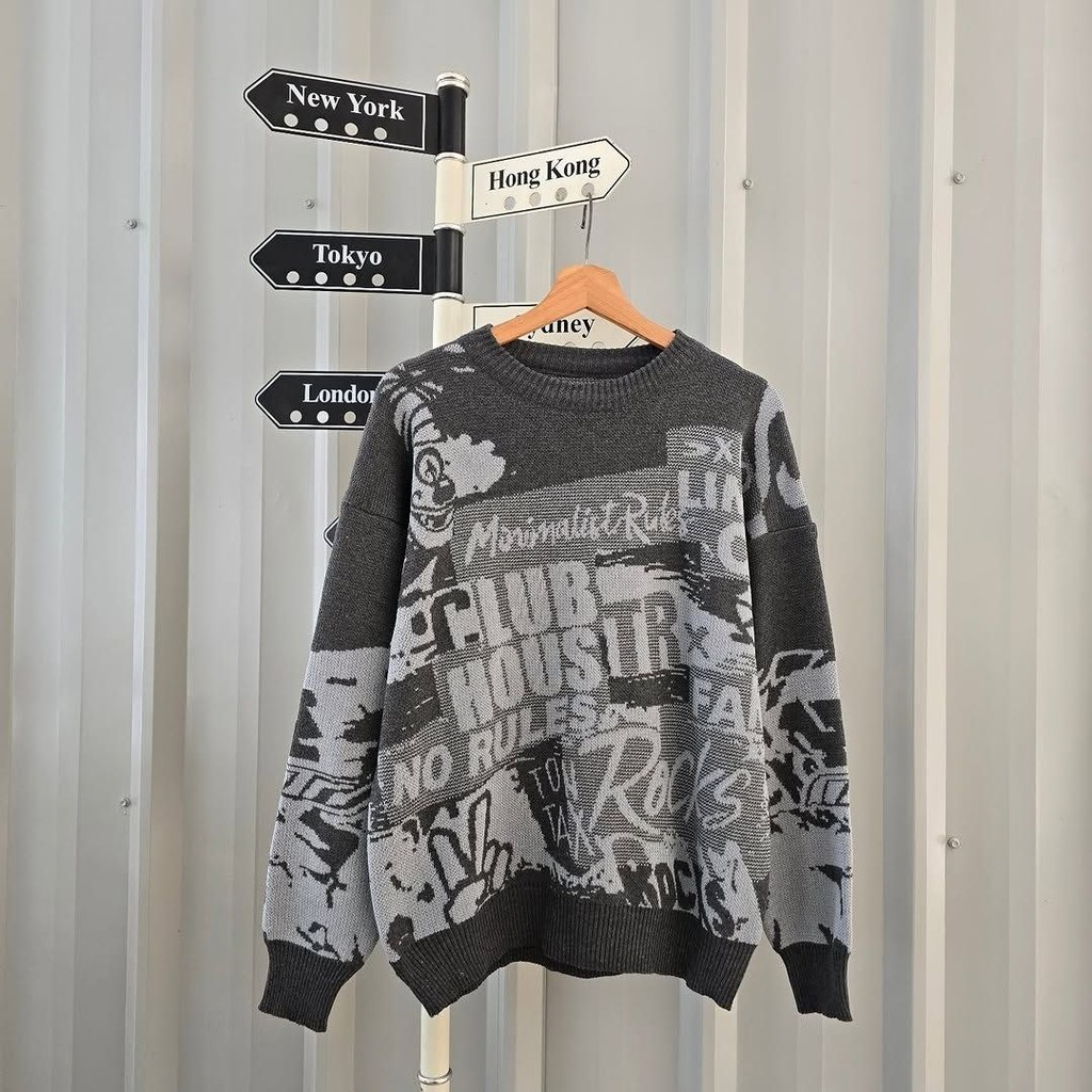 Arlina Urban Sweater | Sweater Rajut Wanita Motif Streetwear | Knit Pullover Korean Style