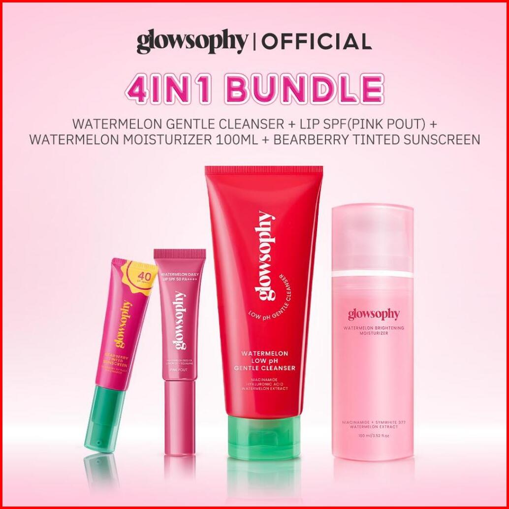 Glowsophy Bundle 4in1 Radiant Refresh Set Watermelon Low Ph Cleanser Watermelon Moist 100ml Lip Spf Bearberry Tinted Sun