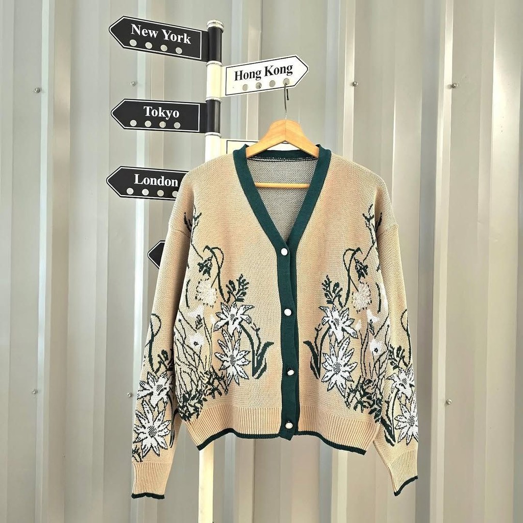 Verdalily Outer | Cardigan Rajut Wanita Motif Bunga, Model V-Neck, Kancing Depan, Casual & Elegan