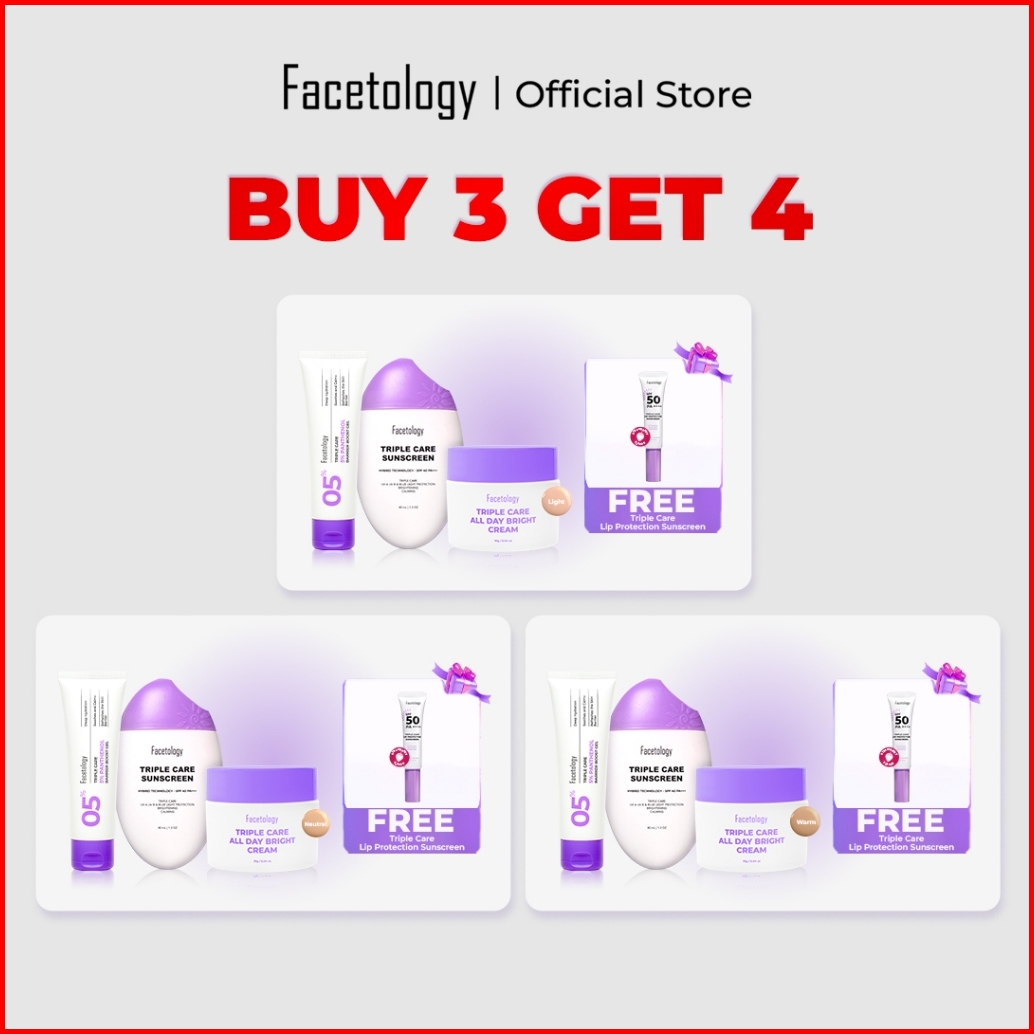 Free Lip Sunscreen Protector Flavor Facetology Bundling Triple Care All Day Bright Cream 10gr Triple Care Sunscreen Spf