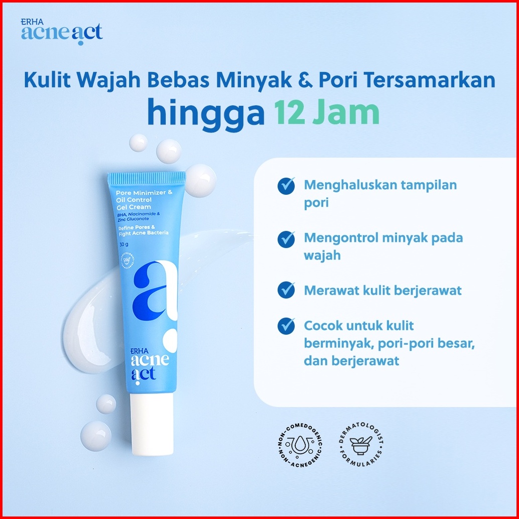 Erha Acneact Pore Minimizer Oil Control Gel Cream 30g - Pelembap Kulit Minyak Pori Besar Bha Niacinamide