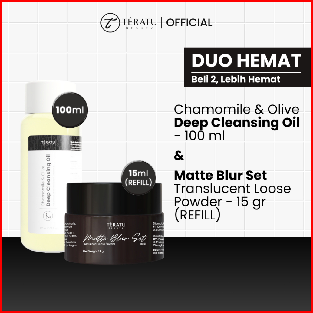 Teratu Beauty Bundle Bedak Dan Pembersih Make Up Matte Blur Set Translucent Loose Powder Deep Cleansing Oil