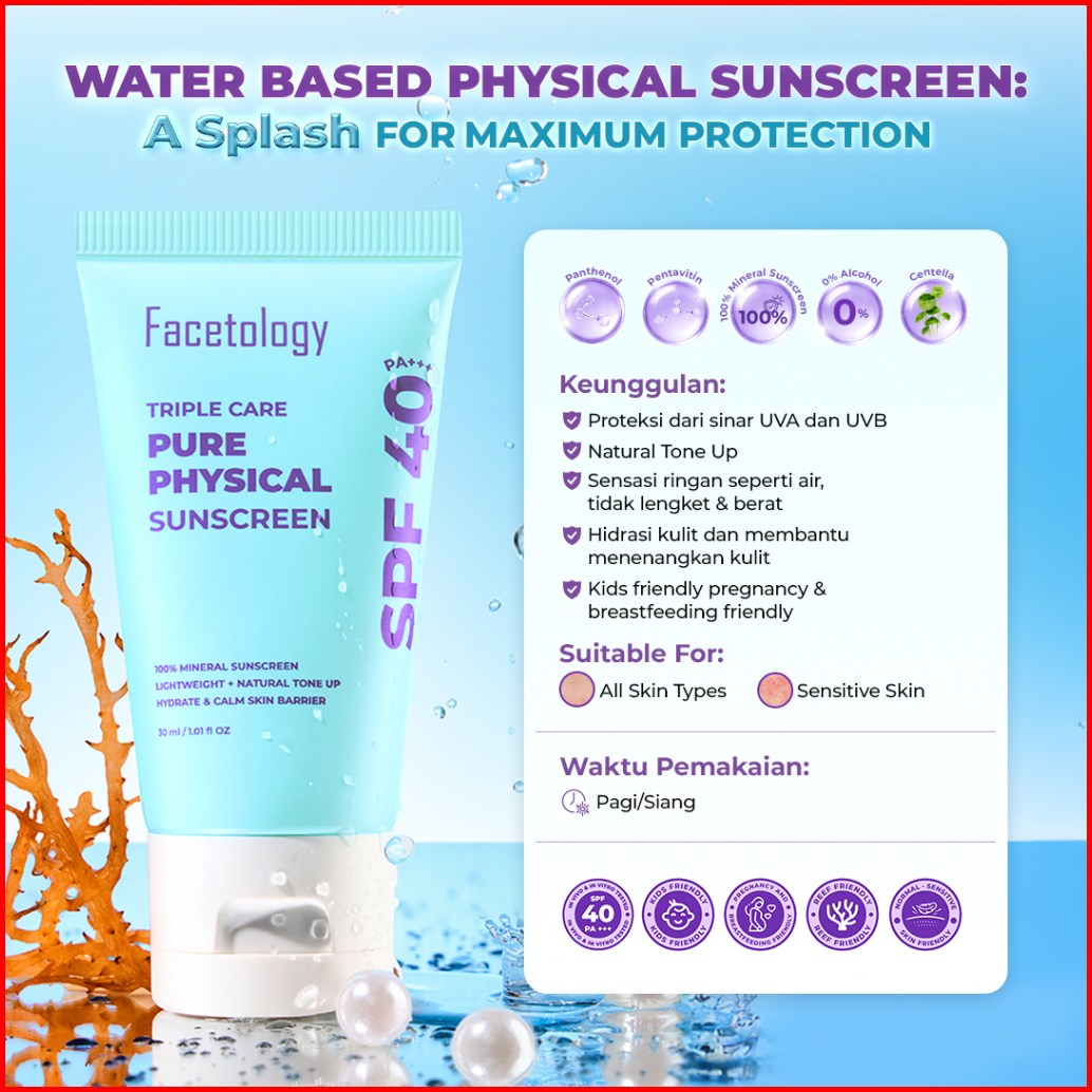 New Launch Facetology Bundling Triple Care Pure Physical Sunscreen Spf 40 Pa 30ml Triple Care Micellar Water 300ml